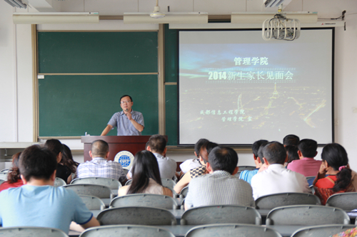 [本网讯]9月9日下午两点,管理学院2014级新生家长见面会在2209教室举行。管理学院院长黄萍、党总支书记陶若铭、副书记杨勇以及刘宇、王菁、杨妮丹等三位老师和2014级新生家长参加了见面会。