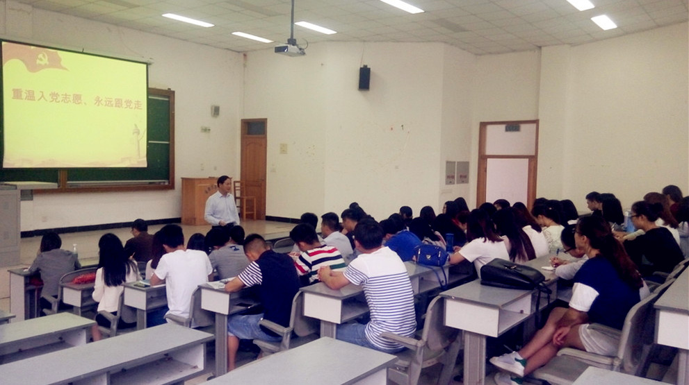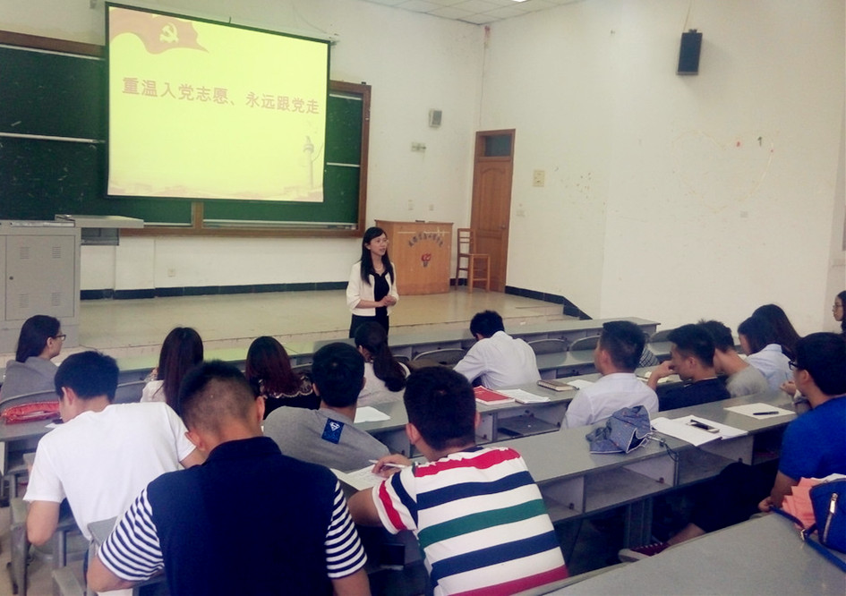 5月4日,管理学院在L4101教室开展“重温入党志愿、永远跟党走”主题党日活动,全面启动“‘两学一做”学习教育工作。学院党总支书记王子华、院长黄萍带头讲述入党初衷、谈人生理想与工作追求。学院教师党员及全体学生党员参加了此次活动。