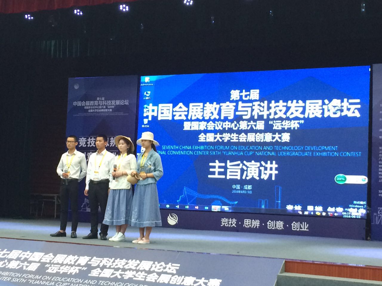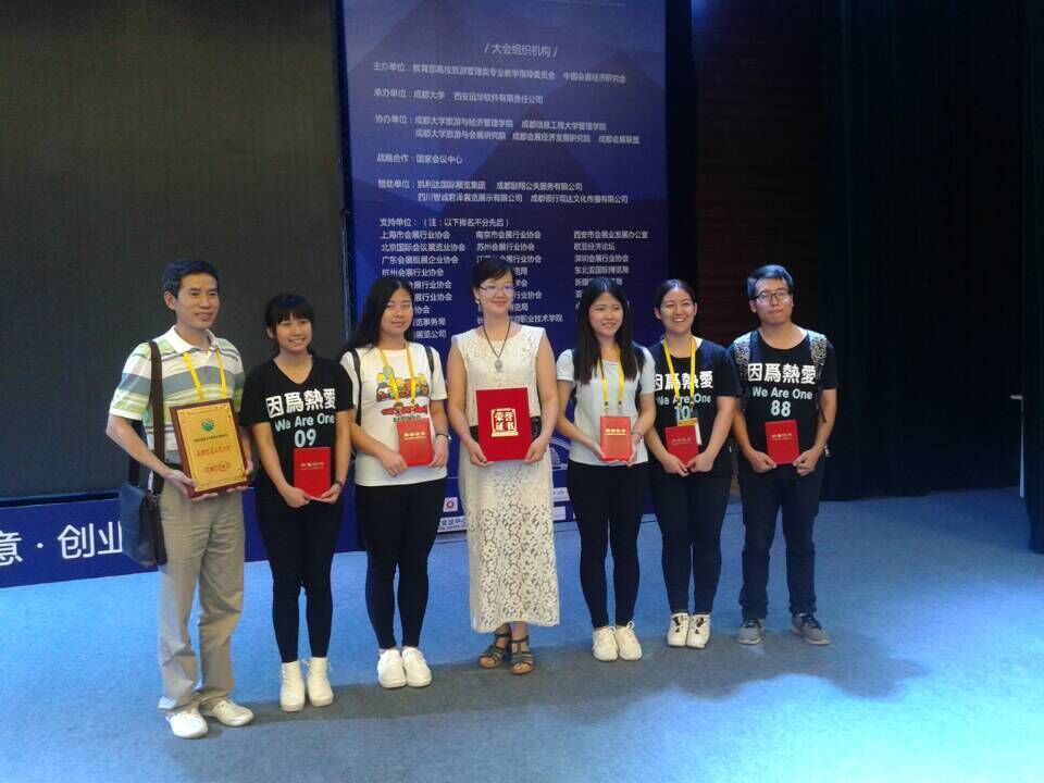 [本网讯]日前,第七届中国会展教育与科技发展论坛暨国家会议中心第六届“远华杯”全国大学生会展创意大赛在成都大学举办,由我校民革支部陈晖和郭创乐老师指导的“品茶·品未来·点燃山区梦想”代表队获得特等奖