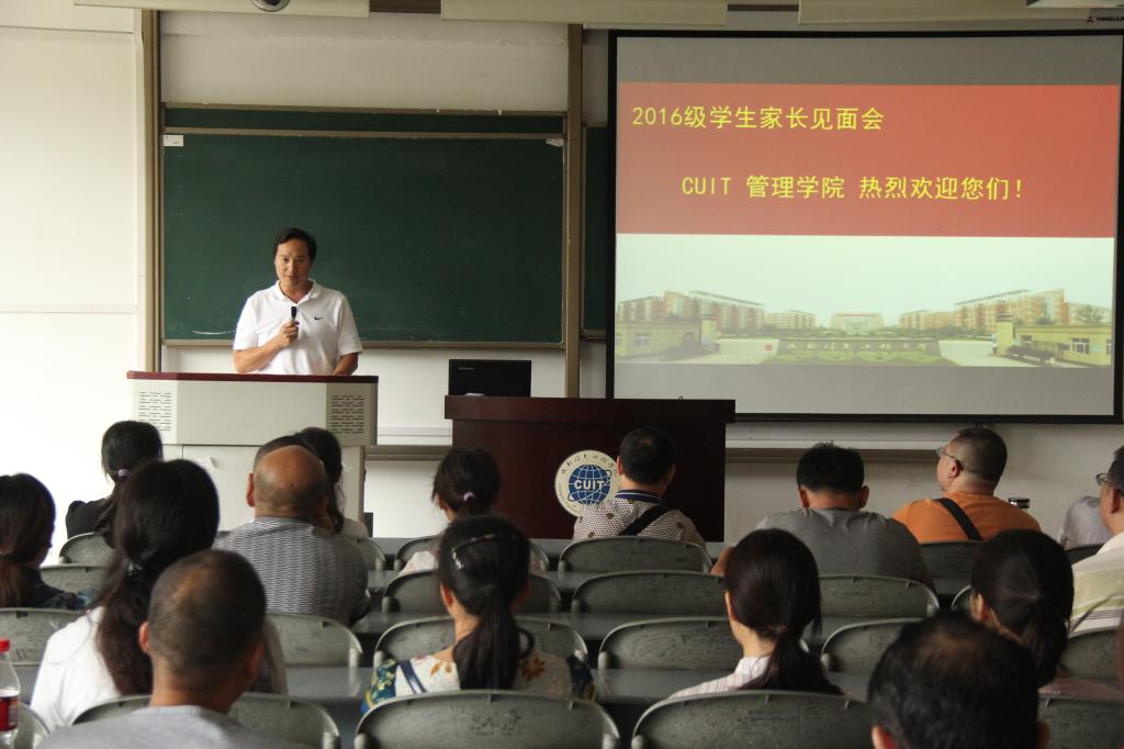 9月8日,管理学院在龙泉2107教室举行了2016级新生家长见面会。到会的有管理学院党总支书记王子华,以及新生辅导员闵建老师和吴瑶老师。会议由2016级新生辅导员吴瑶老师主持。