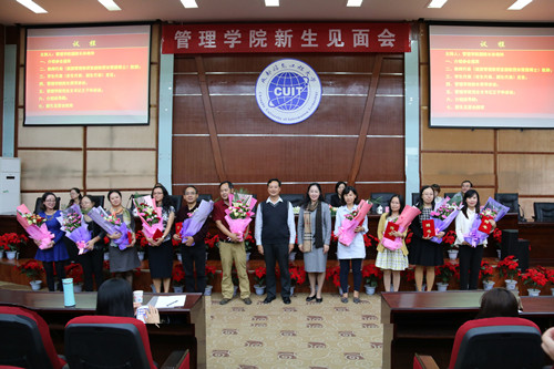 会上,管理学院2016级本科生十名班导师与学生们见面并进行交流,学院领导给班导师颁发了聘书,学生们为班导师、辅导员献上鲜花。