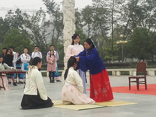 会上,同学们现场展示各民族成人礼仪式。藏族成人礼神圣庄严,蒙古族豪迈激昂,纳西族热情奔放,更值得一提的是由崇雅汉社还原的古代汉族成人父母师长齐聚一堂,仪式庄重而意味悠长。