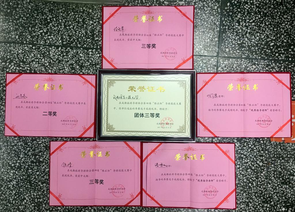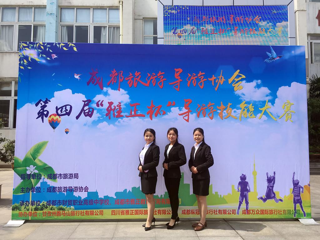 为贯彻落实国务院《“十三五”旅游业发展规划》的精神及省、市旅游局关于旅游人才培养的相关指示,促进旅游院校的专业教学水平和导游相关专业学生导游服务技能的提高。由成都市旅游局指导,成都市旅游导游协会主办及雅正教育咨询有限公司承办的第四届“雅正杯”导游技能服务大赛在四川省财贸职业高级中学成功举行,吸引了四川省内持导游证的专、兼职导游,省内各旅游景区讲解员,四川省本科、高职、中职旅游院校等众多选手参加。对此我院高度重视,积极备赛。初赛阶段,我院选送了12名同学作品参赛,最终3名优秀选手挺进决赛,其中包括中文组2名,英文组1名;决赛阶段,学院专门邀请导游技能培训专家对3位选手进行赛前强化培训,以学应赛,以赛促学,为我院选手在决赛中取得不俗成绩打下坚实基础,同时也深化了学生的专业技能水平,为旅游行业发展提供人才储备和智力支持。