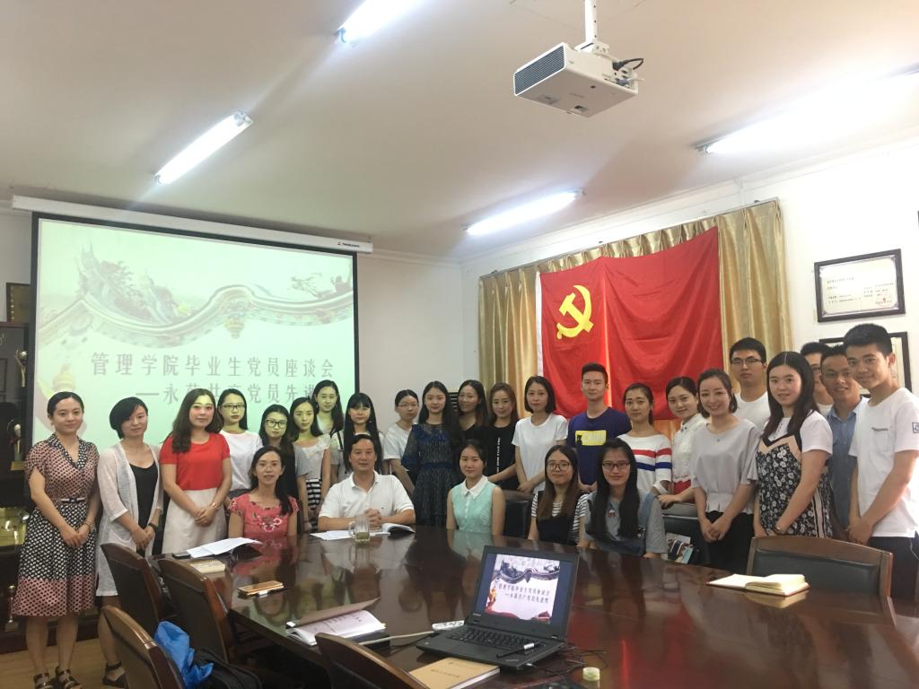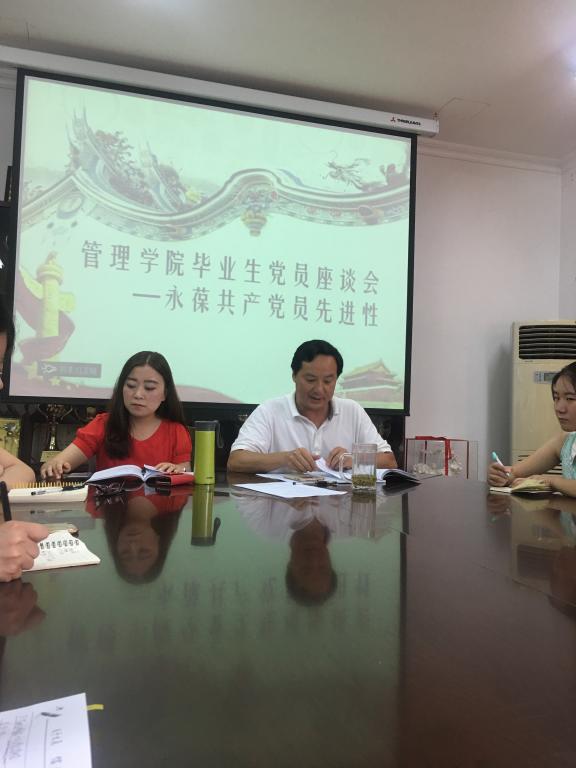 2017年6月23日上午10点,管理学院党支部在第二行政楼会议室召开了以“永葆共产党员先进性”为主题的毕业生党员座谈会,本次会议由学生二支部书记、辅导员潘雪丽主持,党总支书记王子华、全体辅导员及2017届毕业生党员参加了此次座谈会。