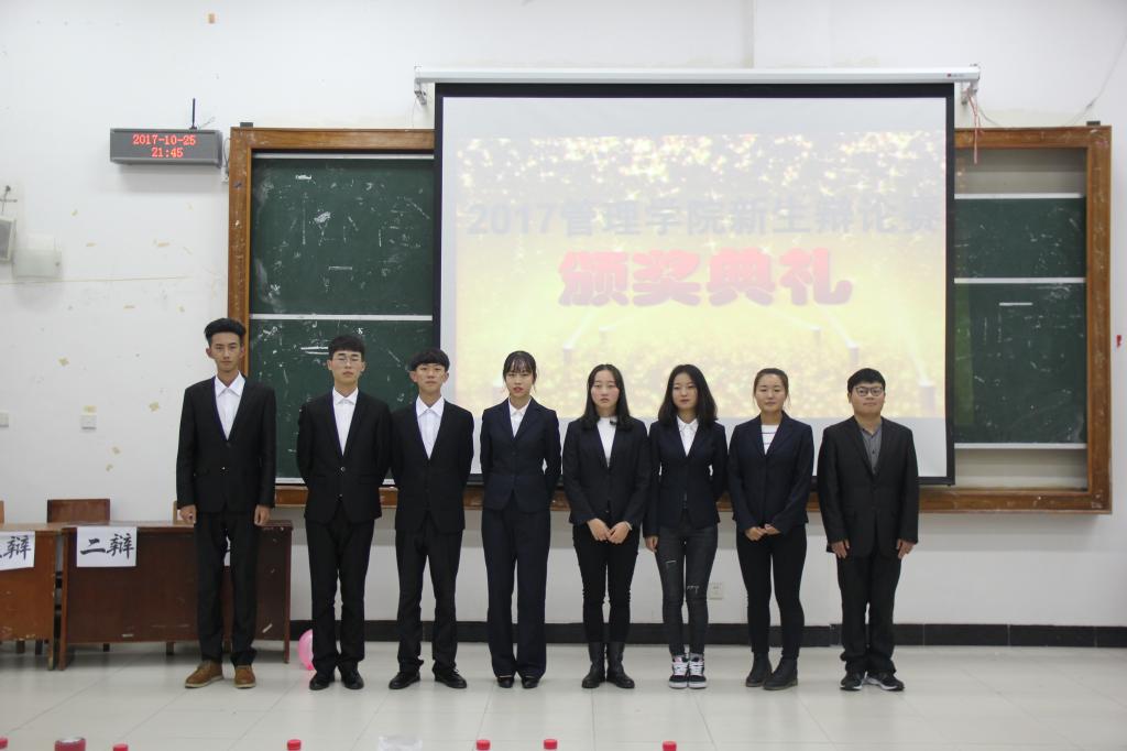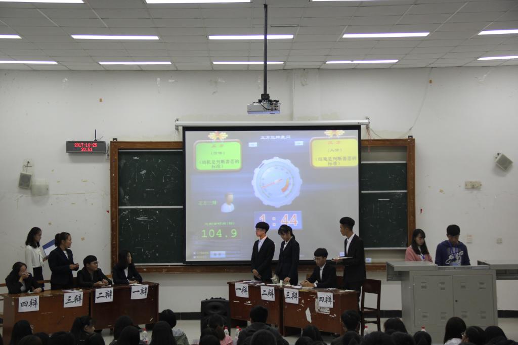10月25日晚8点半,由校团委主办,管理学院学生会学工部及管理学院辩论队联合承办的新生辩论赛在龙泉校区4102教室举行。管院辩论队李余丹、陈欢、赵瑞、林心怡、章婉慧、付饶担任评委,管理学院分团委、学生会主席赖辉昊出任嘉宾,郭珈伶同学担任主席。
