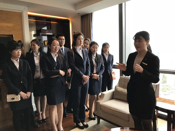 4月13日下午,我校第六届“万豪酒店班”学生在旅游管理专业主任何源博士、班主任刘巧老师的带领下,赴成都富力丽思卡尔顿酒店开展实践课程的实地学习活动。