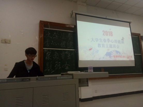 为了全面贯彻党的教育方针、推进素质教育,加强和改进学生心理健康教育,提高学生心理调节能力,培养良好心理品质,促进学生思想道德素质和心理健康成长,管理学院心语心组织各年级各班心理委员于2018年3月26日-4月4日举办了心理健康教育主题班会。