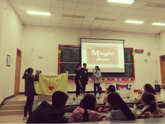 第二环节是心语心成立10周年庆典,首先由心语心现任学生负责人发言,简单阐述了心语心工作室十年发展。接下来是各部门、协会带来的精彩表演,通过互动表演增进了各学院各协会彼此之间的了解,加深了同学们之间的友谊。
