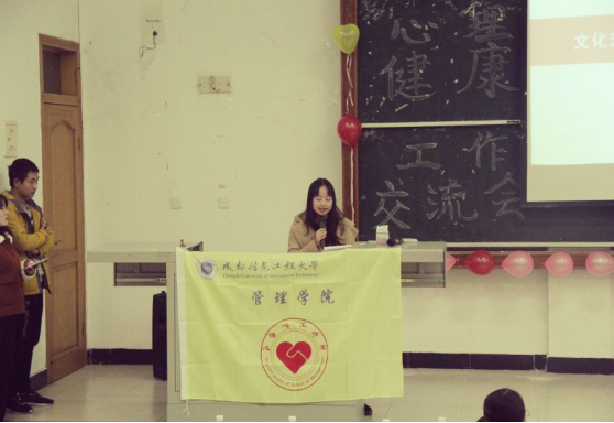 2018年11月16日,由管理学院心语心工作室主办的心理健康工作交流会于L4101召开。此次活动邀请了物流学院心晴家园工作室成员以及指导老师翟艳荣、文化艺术学院心理健康工作室成员、管理学院心语心全体成员以及2008级心语心工作室创建成员,成信之声电台协会成员、知心魔术协会成员参加。