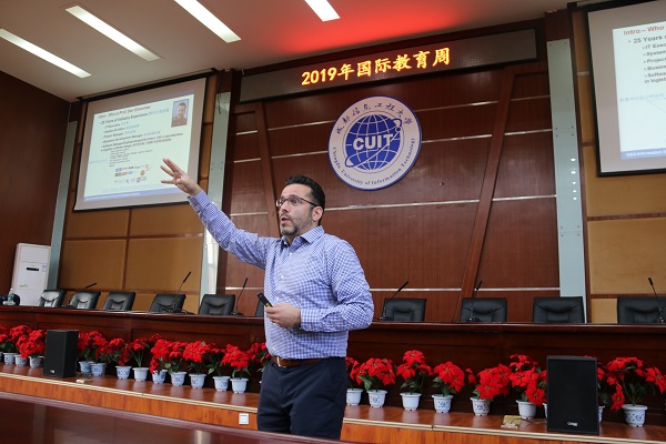 10月16日下午,由国际交流合作处主办,管理学院承办的国际交流合作周系列讲座之一“Industry Driven MBA Curriculum Design For Information Systems”在龙泉校区学术报告厅顺利举办。讲座由美国新罕布什尔大学的Dan Silverma主讲。管理学院院长黄萍、副院长李贵卿及管理学院近三百名师生聆听了讲座。