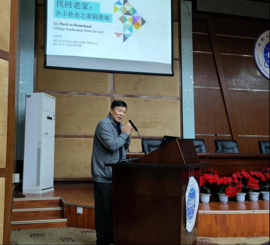 4月14日晚,管理学院特邀厦门大学一级教授、博士生导师、四川美术学院中国艺术遗产研究中心首席专家,彭兆荣教授莅临我校,在龙泉校区学术报告厅为师生做主题为“找回老家:乡土社会之家园景观”专题讲座。本次讲座由管理学院院长黄萍教授主持,龙泉校区300余名研究生及本科生到场聆听了讲座。
