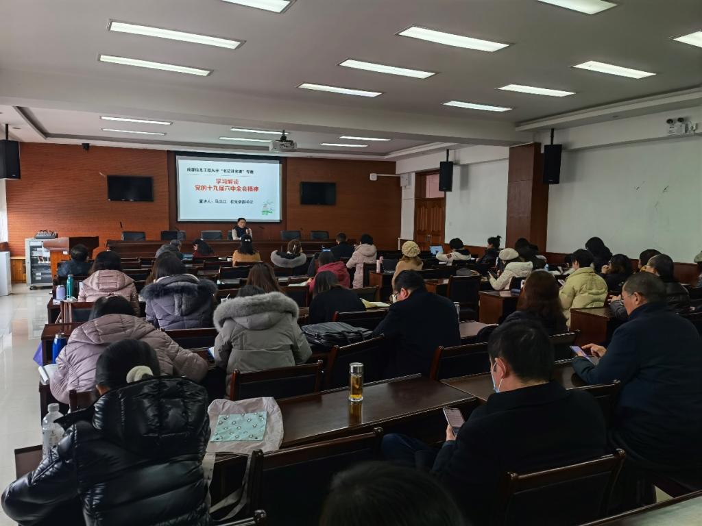 1月4日上午,学校党委副书记马洪江在龙泉校区1213教室为管理学院全体教职工讲授“党的十九届六中全会精神”专题党课,管理学院全体教职工参加学习。学院党委书记王子华主持本次党课。