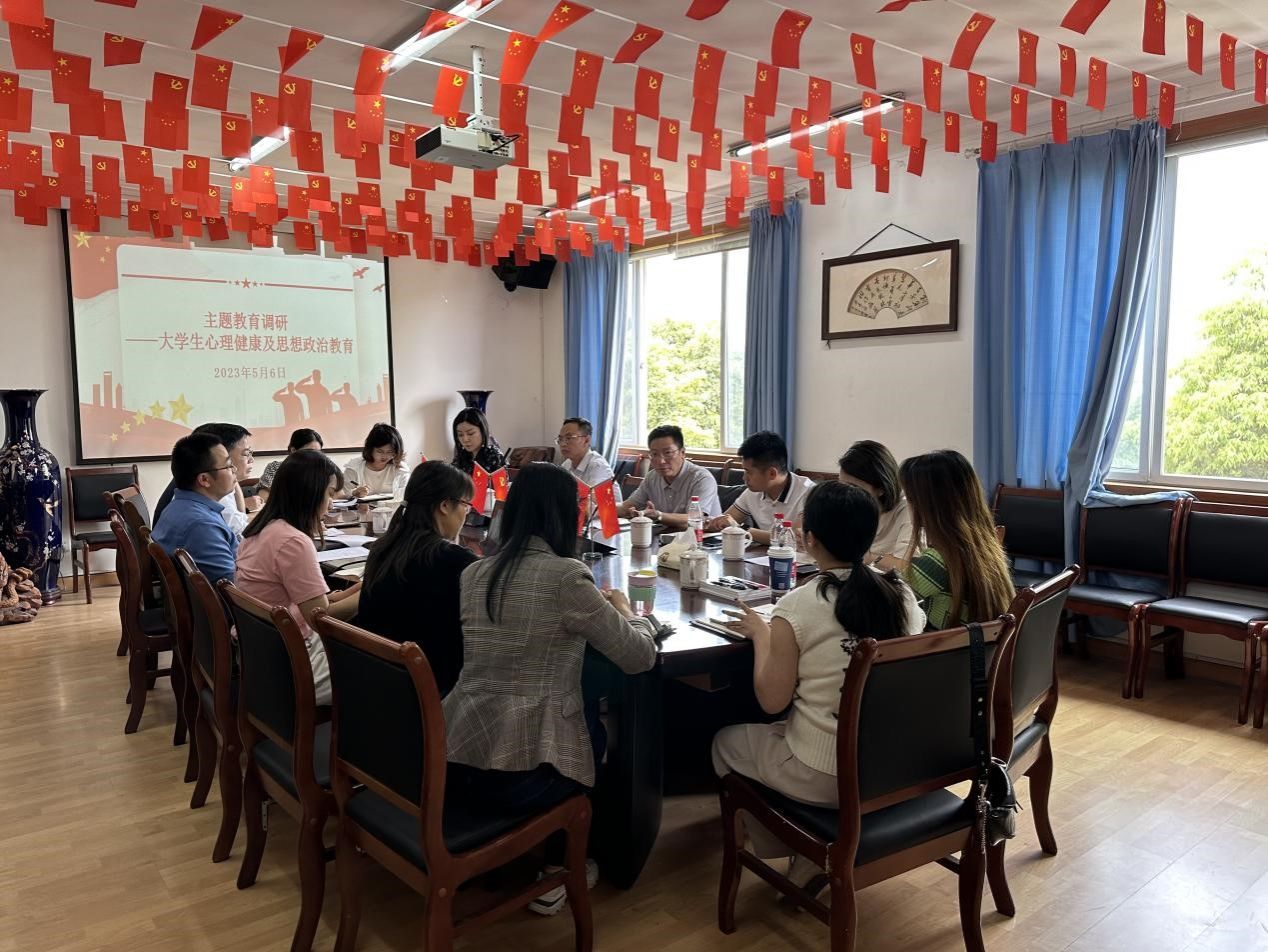 马洪江对这次调研的目的进行了说明,就影响大学生心理健康因素、提升大学生心理健康素质的途径和方法、如何做好大学生思想政治引领工作和解决大学生思想政治教育存在的问题同与会人员进行了探讨交流。