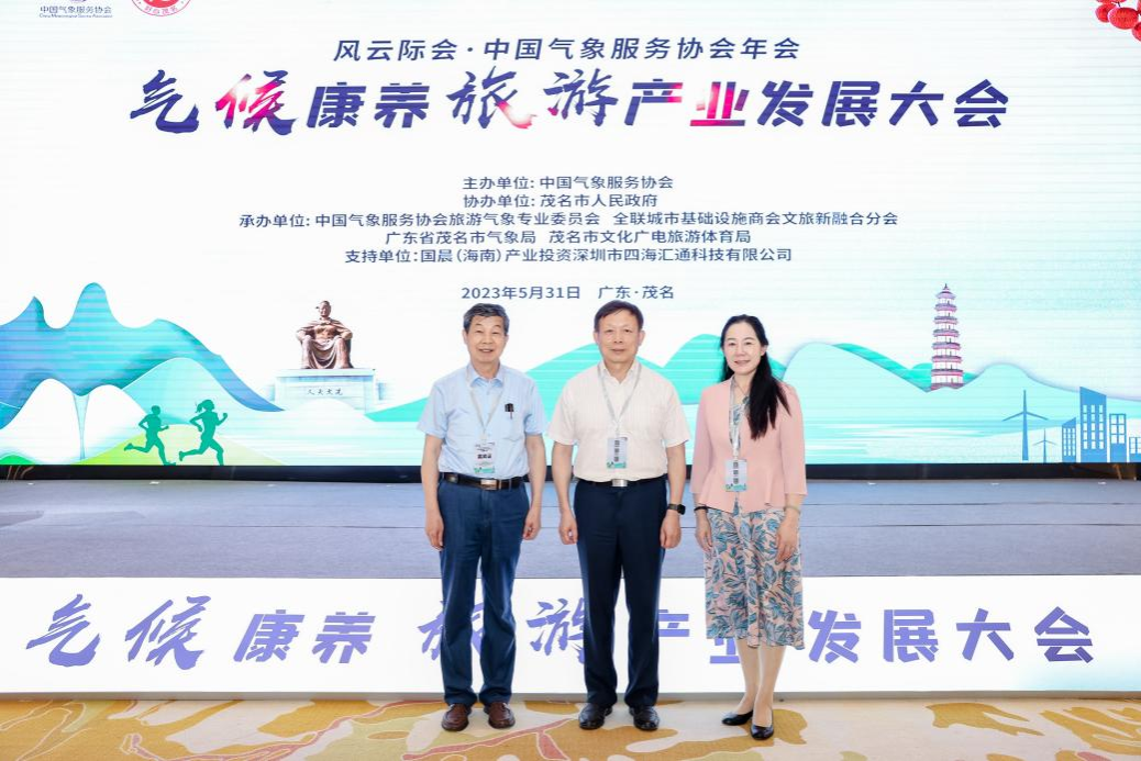 5月31日至6月1日,由中国气象服务协会主办,茂名市人民政府协办,中国气象服务协会旅游气象专业委员会、全联城市基础设施商会文旅新融合分会、茂名市气象局、茂名市文化广电旅游体育局承办的2022-2023年会气候康养旅游产业发展大会在广东茂名召开,中国气象服务协会会长许小峰、中国非物质文化遗产保护协会会长王晓峰、中国气象局原副局长余勇、茂名市人民政府副市长高雪山、广东省气象局副局长曾琮、广东省文化和旅游厅二级巡视员李再炎、中国气象服务协会常务副会长孙健、全联城市基础设施商会文旅新融合分会会长彭志凯等领导出席会议,我校大气科学学院王式功教授和管理学院黄萍教授应邀在会上作专题报告。