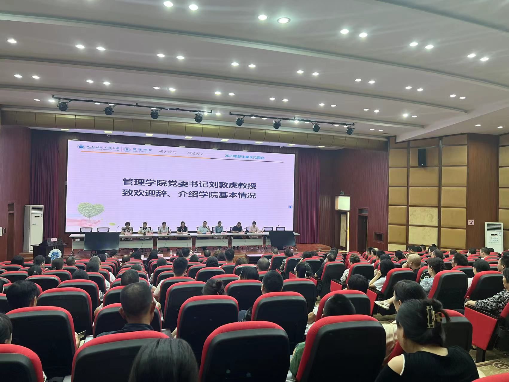 为凝聚家校合力,帮助新生开启求学生涯的新篇章。9月4日下午,管理学院在龙泉校区学术报告厅召开2023级新生家长见面会,学院领导、各系主任、学生科科长、新生辅导员及330余名新生家长参加见面会,会议由管理学院党委副书记刘宇主持。