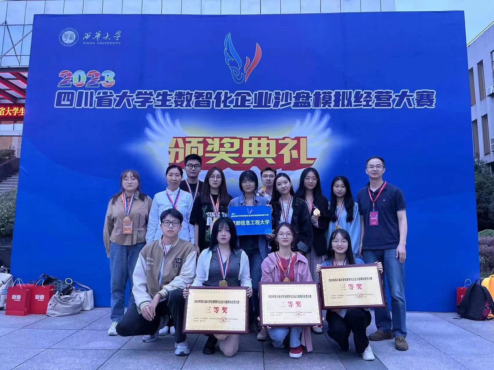 由四川省教育厅主办的2023年四川省大学生ERP数智化企业沙盘模拟经营大赛9月24日在西华大学举办。本次比赛首次增设新工科组,分设新文科、新工科两个赛道,比赛规模也创下了历年新高,共计46所本科院校186支队伍740余名学生参加了复赛,115支队伍,460名学生参加总决赛。成都信息工程大学管理学院经过校内选拔,四川省复赛,组织了三支代表队参加了四川省的决赛。经过激烈的比赛,成都信息工程大学两支队伍获得了三等奖,一支队伍获得了二等奖。