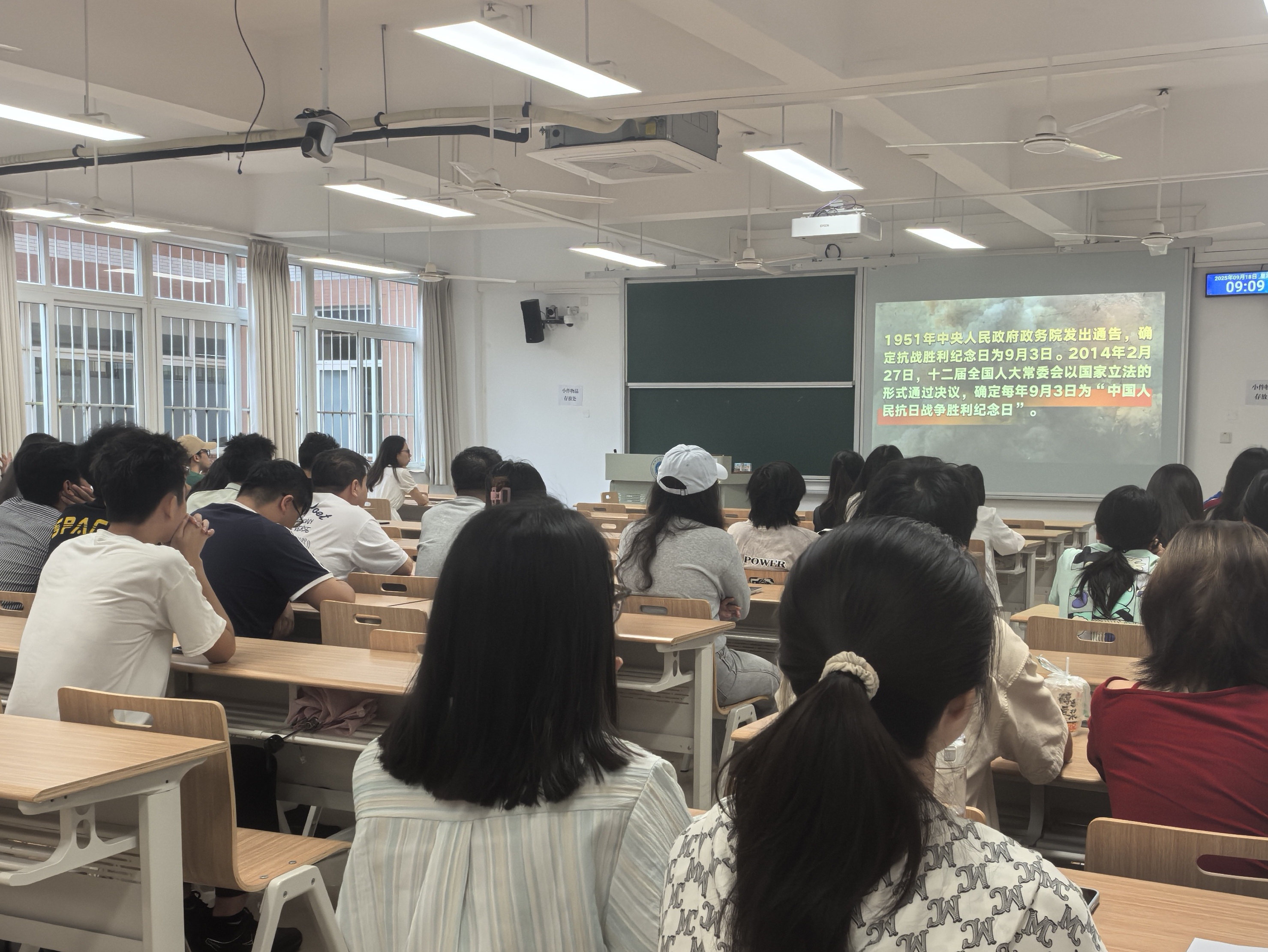 为庆祝抗日战争胜利80周年,弘扬伟大抗战精神和爱国主义精神。2025年9月18日上午,管理学院通过线上线下相结合的方式组织学院学生通过集中和自主学习的方式同上一堂“弘扬伟大抗战精神做光荣自豪中国人——纪念中国人民抗日战争暨世界反法西斯战争胜利80周年”思政大课。