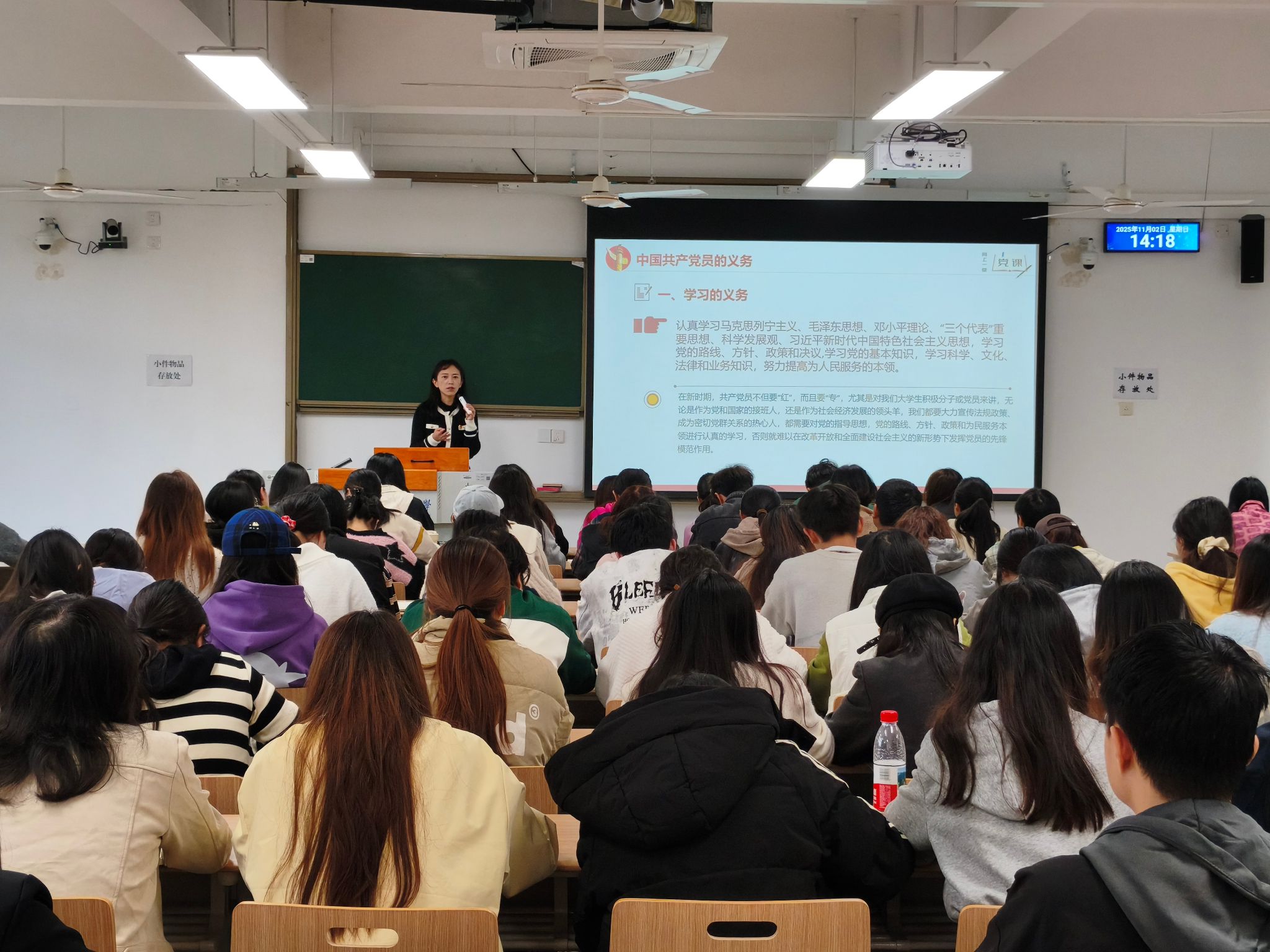 11月2日下午,管理学院党委副书记、纪委书记刘宇为入党积极分子讲授党纪专题党课,强化其党性修养与责任意识,专题党课在二教L2106教室开展,共111名入党积极分子参与。