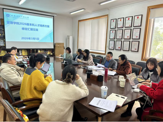 会议伊始,教学院长首先传达了学校关于2026版本科专业人才培养方案修订工作的指导意见和精神。他强调,本次修订工作正值“十五五”规划开局的关键节点,在人工智能背景下,新版本科人才培养方案的修订既要紧密对接国家战略和区域经济社会发展需求,又要注重学生能力的培养。随后,人力资源管理、会计学、财务管理和社会工作三个系的系主任分别就本专业2026版培养方案从整体修订思路、调研情况、进展情况及存在的问题等方面展开详细汇报,各专业汇报完以后就各专业的实际情况展开了交流研讨。教学院长对各自专业的汇报做了总结发言,充分肯定了各系在培养方案修订过程中的工作,同时强调本科人才培养方案是保障教育教学质量的纲领性文件,各专业一定要扎实做好培养方案修订工作,并对下一步的工作做了具体安排。