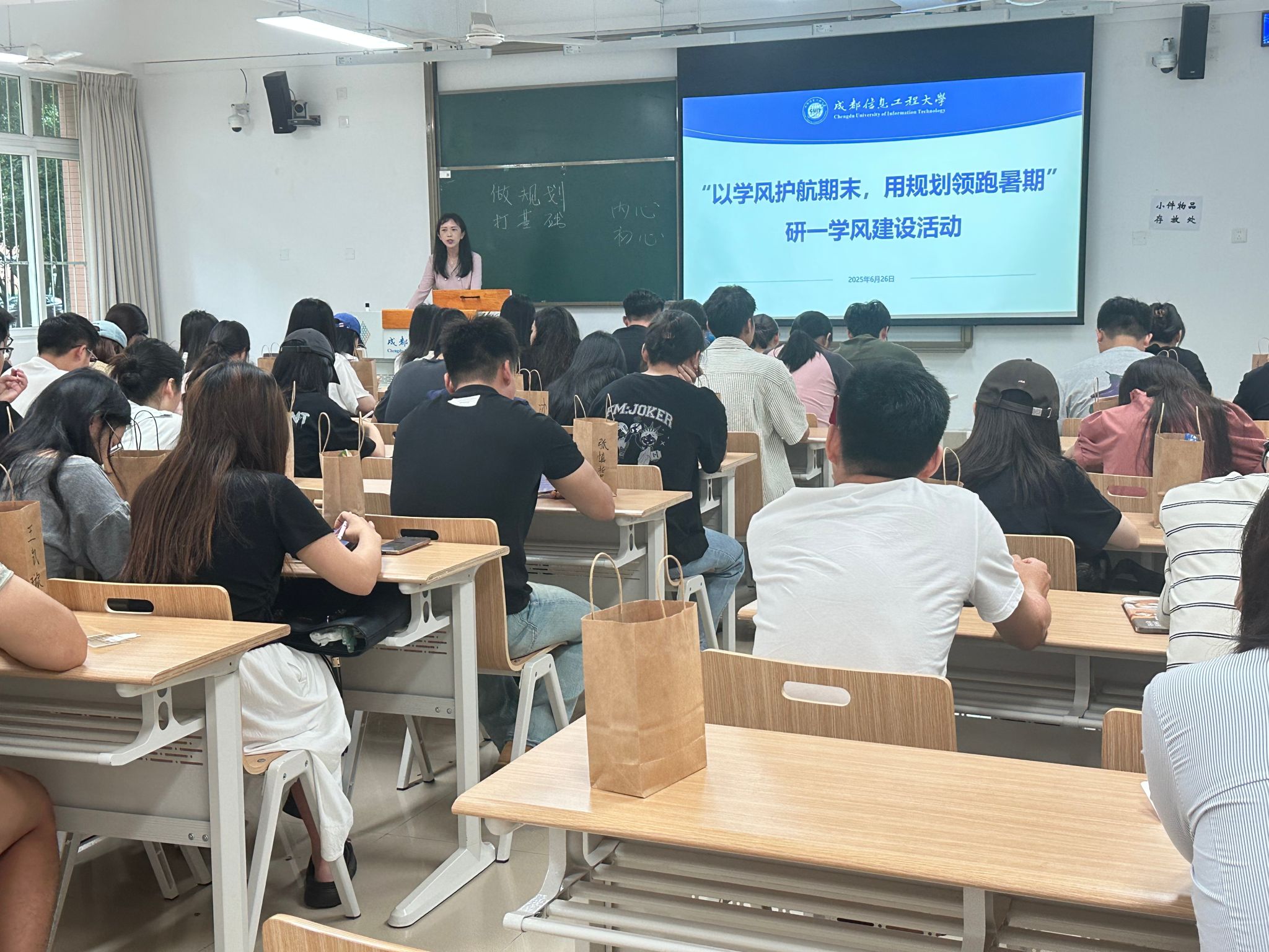 2025年6月27日,管理学院召开“以学风护航期末,用规划领跑暑期”研究生学风建设活动,学院党委副书记刘宇、研究生辅导员危一心及2024级全体研究生参加。